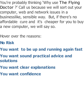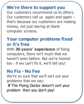 If you are at home, work from home or run a micro business, then The Flying Doctor is for you – because we do housecalls.